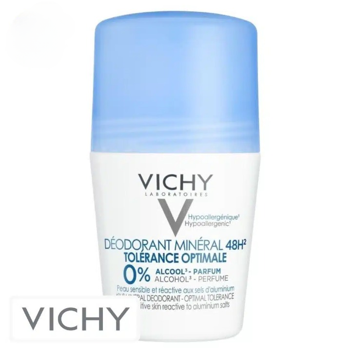 Vichy 48h Mineral Roll-On Deodorant is a hypoallergenic deodorant designed to care for sensitive skin that reacts to aluminum salts. It offers a pure and minimalist formula, free of alcohol and perfume, to moisturize and soothe even the most fragile underarms.